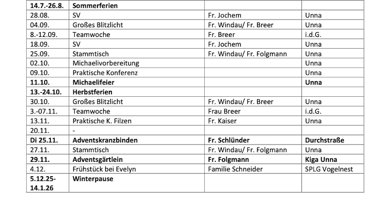 Konferenztermine 2. Halbjahr 2025 (wöchentlich)