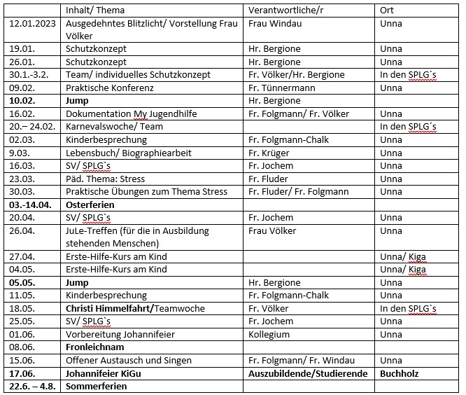 Konferenztermine 1. Halbjahr 2023 (wöchentlich)
